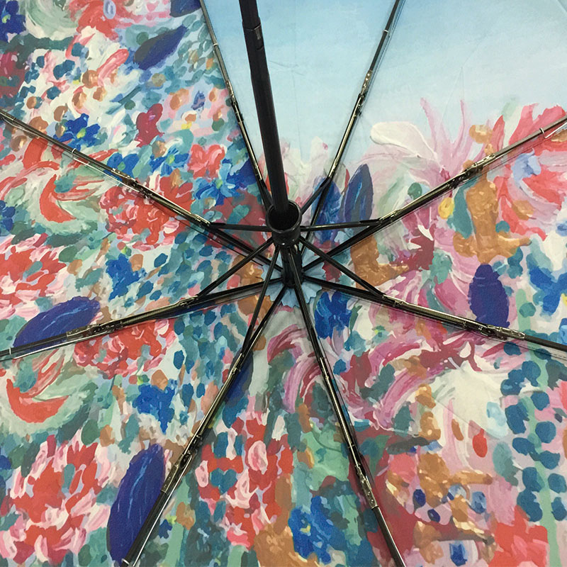 New auto open and auto colose double canopy custom 3 fold umbrella with inside layer colorful printing High quality fold umbrella distributor wholesaler